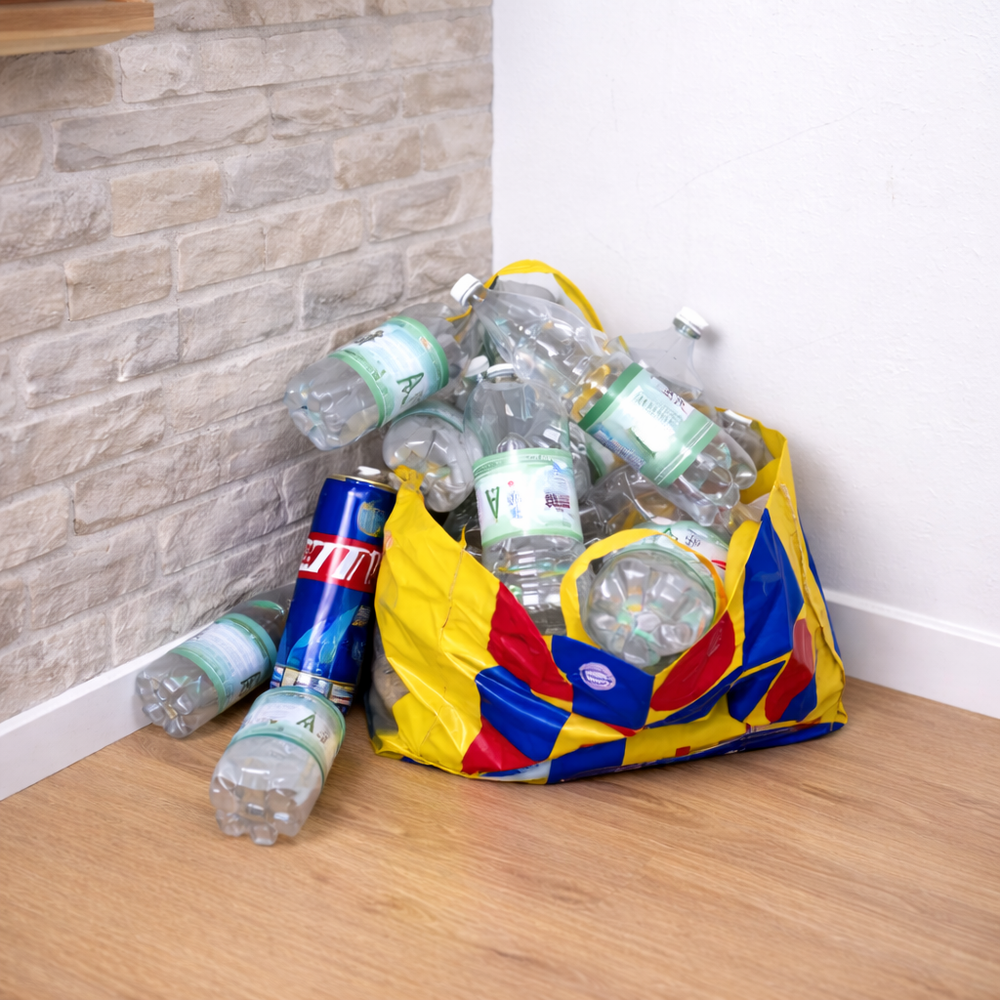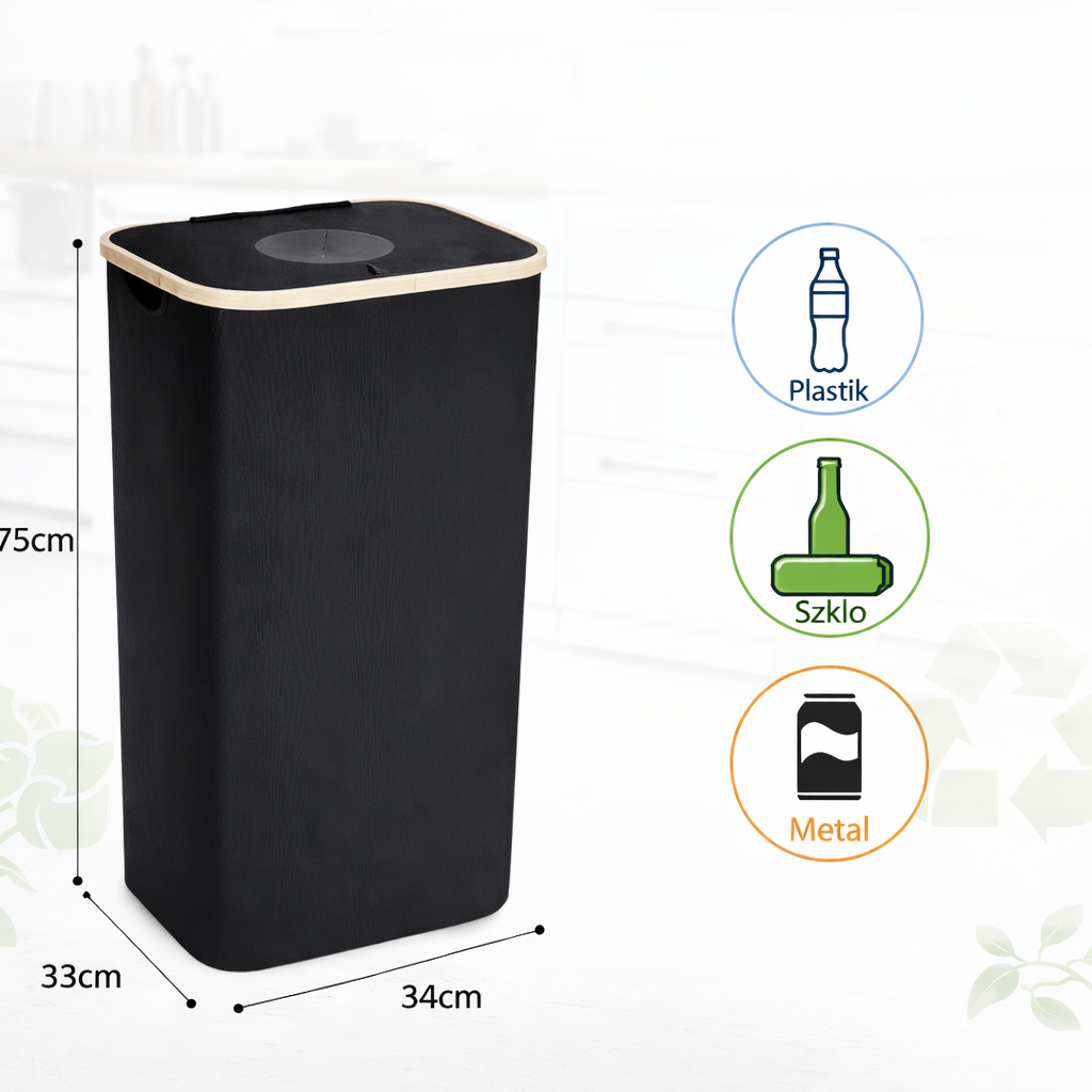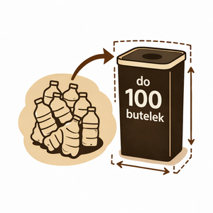 Kosz ma aż 110L pojemności, co oznacza, że bez problemu pomieści dużą ilość butelek PET i puszek (80 sztuk). W praktyce to nawet kilka dni/tygodni zbierania.
