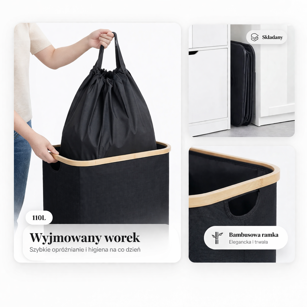 Wyjmujesz worek, chwytasz za uchwyty i wynosisz — dokładnie tak, jak powinno to działać.